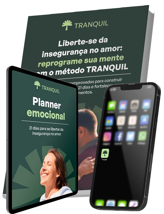 Com apenas R$47,00, você terá acesso completo a uma didática guiada e transformadora do E-book do método Tranquil, com técnicas de reprogramação emocional para aliviar o ciúme, a insegurança e a ansiedade que afetam seus relacionamentos. Tudo isso dentro de um Aplicativo Exclusivo da Tranquil que você terá acesso!